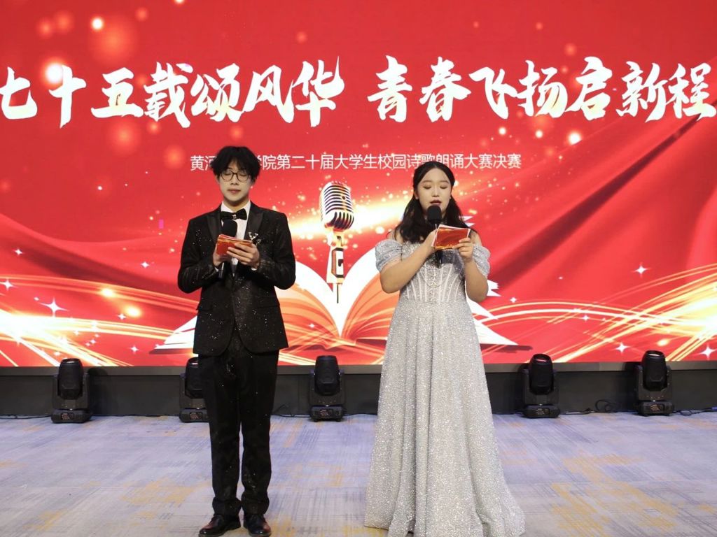 为弘扬中华优秀传统文化,增强同学们的文化自信与爱国情怀,丰富校园文化生活。竞技宝官网于12月18日在东校区15号楼第一学术报告厅举行“七十五载颂风华,青春飞扬启新程”第二十届校园诗歌朗诵大赛决赛。